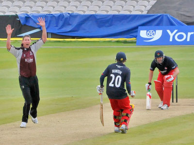 With the score on 25 Trescothick hit Mahmood to the deep and was caught by Powell. he had made 10