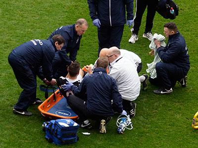 to applause all round the ground he is taken off and the England manager in the directors box must be concerned and isn't that the Liverpool manager doing a bit of spying!