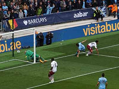 Guzan's error gives Aguero his 21st league goal after just 3 minutes