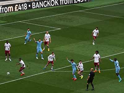..he thumps the ball into the net giving the keeper no chance and City were ahead!