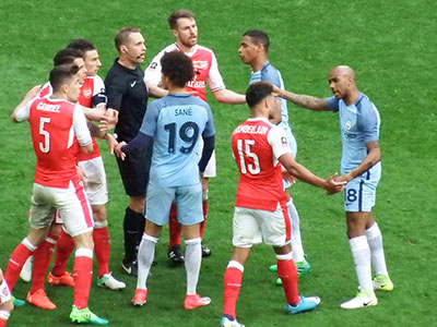 As far as the game against Arsenal is concerned I felt City deserved a better result. We had most of the play and it was a great goal by Aguero and we hit both post and cross bar but found the net only once. Toure and Fernandinho did well in midfield and with Kompany and Otamendi generally controlling the final third Bravo had little to do. I don't know whether Sane was working to instructions but he rarely used his outstanding pace to beat opponents. De Bruyne tried valiantly to create openings in the absence of Silva for most of the game and we need so much to be more deadly in front of goal. The atmosphere created by the City fans was excellent and they deserved a better response by the players. As far as the officials are concerned words fail me - they did not de well at all.