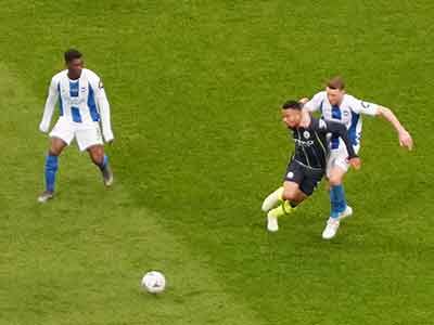 Late in the game a rare Brighton attack ends with an easy save for Ederson