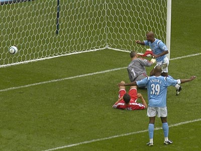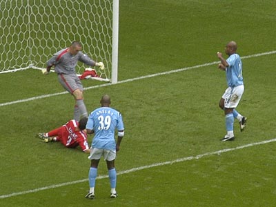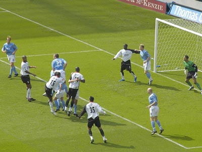 after the half hour mark City should have made it 2-0 but this shot by Sibierski