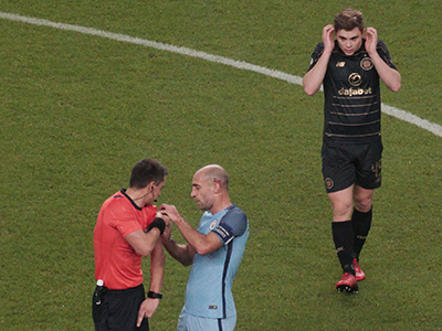 Zabaleta helps the referee out and Forrest tries to listen to Radio One on his secret headphones!
