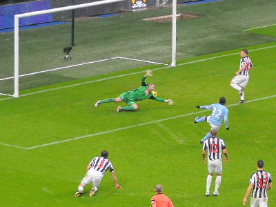 ...hey presto Carlos Tevez placed it past Myhill to give City a two goal lead after just 22 minutes