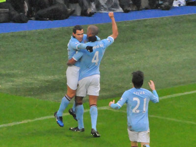 City went further ahead a few minutes later with a great move. Kompany ran with the ball from defence - passed to Tevez who used Silva for a wall pass ... and .....