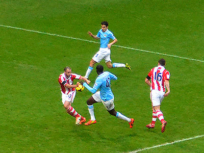 This was another of those easy to forget games. Hughes brought a few buses to seal up the Stoke goal and with City lacking any real sparkle in the first half this game looked like being a goal-less draw and odds on to be the last item on Match-of-the Day! Luckily for City a strategy change - putting Toure further forward paid off. Having lost substitute Jovetic - on for off form Negredo - to an injury when he shot at goal there was little option but to bring on Garcia and push up Toure. Yaya was therefore in prime position when Kolarov put in a strong cross to get the ball over the line much to the relief of the City fans and players. Shortly afterwards Dzeko missed an absolute sitter which would have made the result safe. The back four managed to keep the occasional Stoke attack at bay Joe Hart having to make just one save all game. With a packed Stoke defence it was very difficult for City to break through and they only appeared to up their game after scoring. Hughes tried to put City off by telling his captain to win the toss and change ends! Its a long time since City had to kick off facing the South Stand.