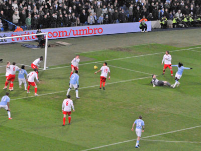 .... and the ball was poked home by Carlos Tevez from close range to give City an early lead after just 6 minutes