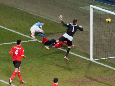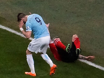Dzeko appealed and Negredo looked anxiously towards the linesman...