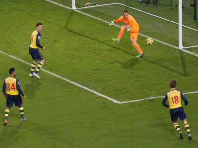 ....the free kick taken by Cazorla is headed into goal by Giroud -where was the marking!!!