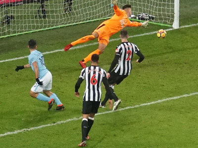 The Newcastle keeper has to save from first Sterling and then Silva as City press