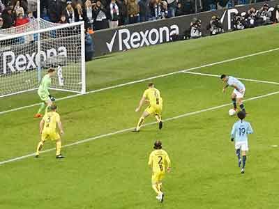 City took an early lead when De Bruyne headed a Silva cross past the keeper.