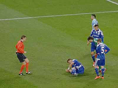 and so the game ends goal-less with yet another Kiev player having a problem - I wonder where that sniper is!