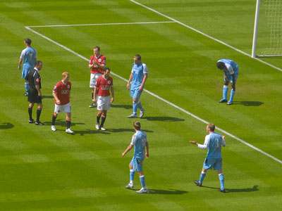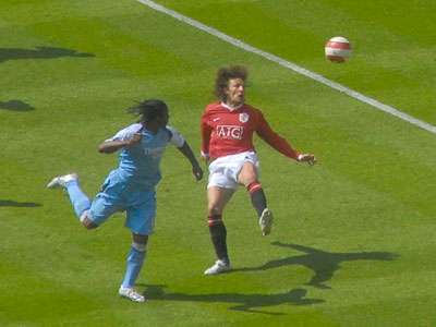 This was not a bad display by City against a strong United side who were still suffering from Milanitis . Shame Ball blotted his copybook as he is showing good form. Johnson does not look out of place but Mpenza needs support up front . Dunne and Distin remain a strong central defence . Onuoha needs to improve his distribution to keep his place when Richards returns.