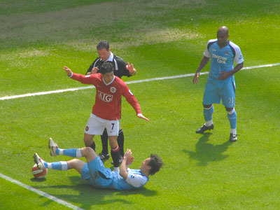 Ronaldo went through his usual histrionics and then Salford CSI had to take action about the stud marks.