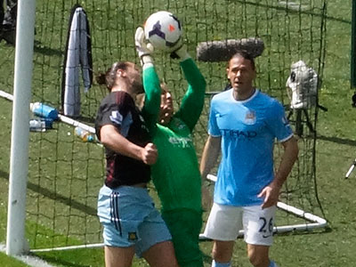 Well we did it! The expected win over West Ham was fairly straight forward. The 'Hammers' came to defend just like Villa did in mid-week so Joe Hart had very little to do. As expected the atmosphere was much better than the Villa game and once Nasri had broken the deadlock by scoring an excellent goal from outside the penalty area it was only a matter of time before City made the game and the Premier League title safe by scoring again. After some near misses it was appropriate that the second goal was scored by the skipper following a corner. Kompany has been magnificent all season and was his 4th league goal of the season. A word too for Demichelis who failed to impress in his early games but is now a favorite of many fans. He and Vincent Kompany have provided a solid backbone in the final games of the season when it really mattered. Silva and Toure ran the midfield and ensured that City dominated possession but it was a shame that neither Aguero or Dzeko could add to their goal tallies. Zabaleta and Kolarov had their usual excursions down the flanks to keep the opposing defenders busy.Alas we failed to beat the Chelsea record of the number of goals scored in the Premiership - we will just have to wait until next season to do it! A magnificent achievement by the team and staff.