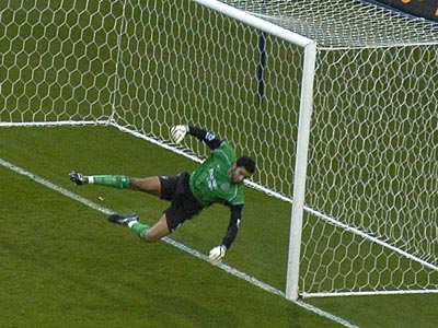 double save by David James after a slip by Bosvelt in midfield. First he saved