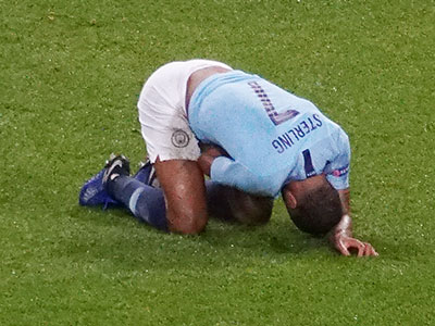 Three minutes into the second half and Sterling taking a pass from Zinchenko curled in a great third goal for City