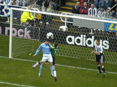 top netting. Many Newcastle supporters at the far end thought it was a goal and