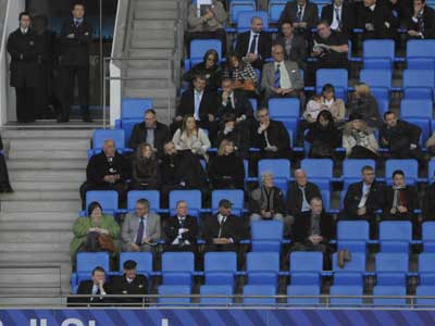 The first couple of rows of the 'directors box' was somewhat deserted today. Even Bernard Halford having a seat today. I think I spotted Paul Dickov though.