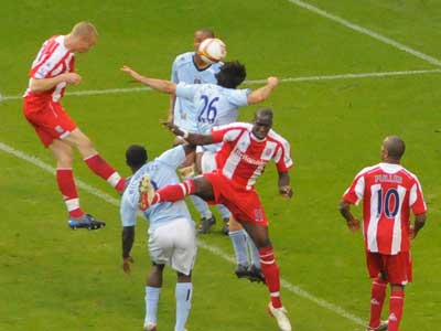 As early as the 3rd minute a run and shot by Robinho nearly gave City an early lead. Only a last gasp save by Sorensen saving the day for Stoke