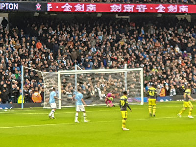 With City having almost 80% possession it was just a matter of being patient and waiting for the goals to come. Otamendi scored with a header from a Benardo cross following a corner and Aguero notched two from close range to bring his total for the season to 12. At three nil City relaxed a bit and Southampton actually came into our half - disgraceful! They did score to lift a surprisingly high number of visiting fans after their massive defeat last weekend, Bravo had hardly anything to do on his second outing this season. The defence coped with the odd attack and the main issue was breaking through the visiting defence determined on keeping the score down.