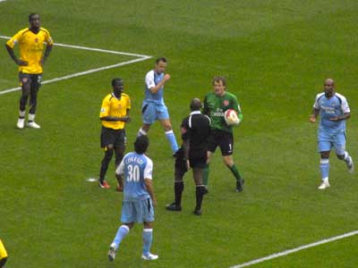 Arsenal did try a few protests but the referee was adamant and City had a chance