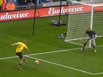 took the kick and crashed the ball past Lehmann via the underneath of the crossbar