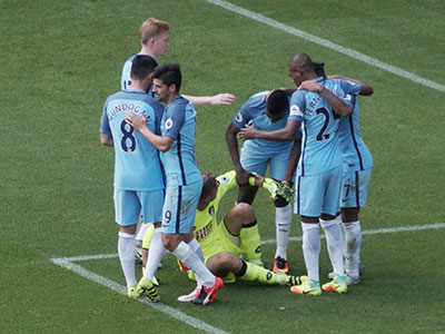 Yet another fine performance by City enabled the table toppers to keep their record breaking start with their 8th victory on the trot in all games. Bournemouth were the sufferers this time and it could have been even more than four goals. Man of the match Kevin De Bruyne almost scored in the opening seconds but he out-thought the Bournemouth defenders shortly after when he struck a free kick under the jumping wall. He then proceeded to lift the crowd with an impressive range of passes all brilliantly weighted. Iheanacho scored his usual goal and played well in the absence of Aguero. Sterling too had a great game and almost scored the goal of the season beating several players before hitting the post. Gundogan got off the mark in his league debut and he looks an excellent player. Kolarov is new born and it's quite amazing to see him play now. The only black mark was the red card for Nolito given for an attempted head butt late in the game. It was pretty stupid and totally unnecessary. With City rampant the defence had little to do and there was plenty of opportunity to see the inter passing of the defence with Bravo playing his part. The atmosphere in the stadium was very good and it was probably City's best showing so far this season.