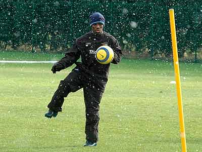 Just under 11 years ago I visited Carrington to take pictures at a City training session under Kevin Keegan and among the players there was a certain young goalkeeper by the name of Schmeichel. At the end of the training session which started in a snow storm but ended in sunshine I took some pics of Keegan shooting in at Kasper. As well as taking the odd snap I also had to act as ball boy! More on the 2004- 05 season can be found
