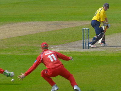 It was a rare chance to see Andrew Flintoff albeit as a batsman only and he was soon in action diving to field a mishit by Craig White